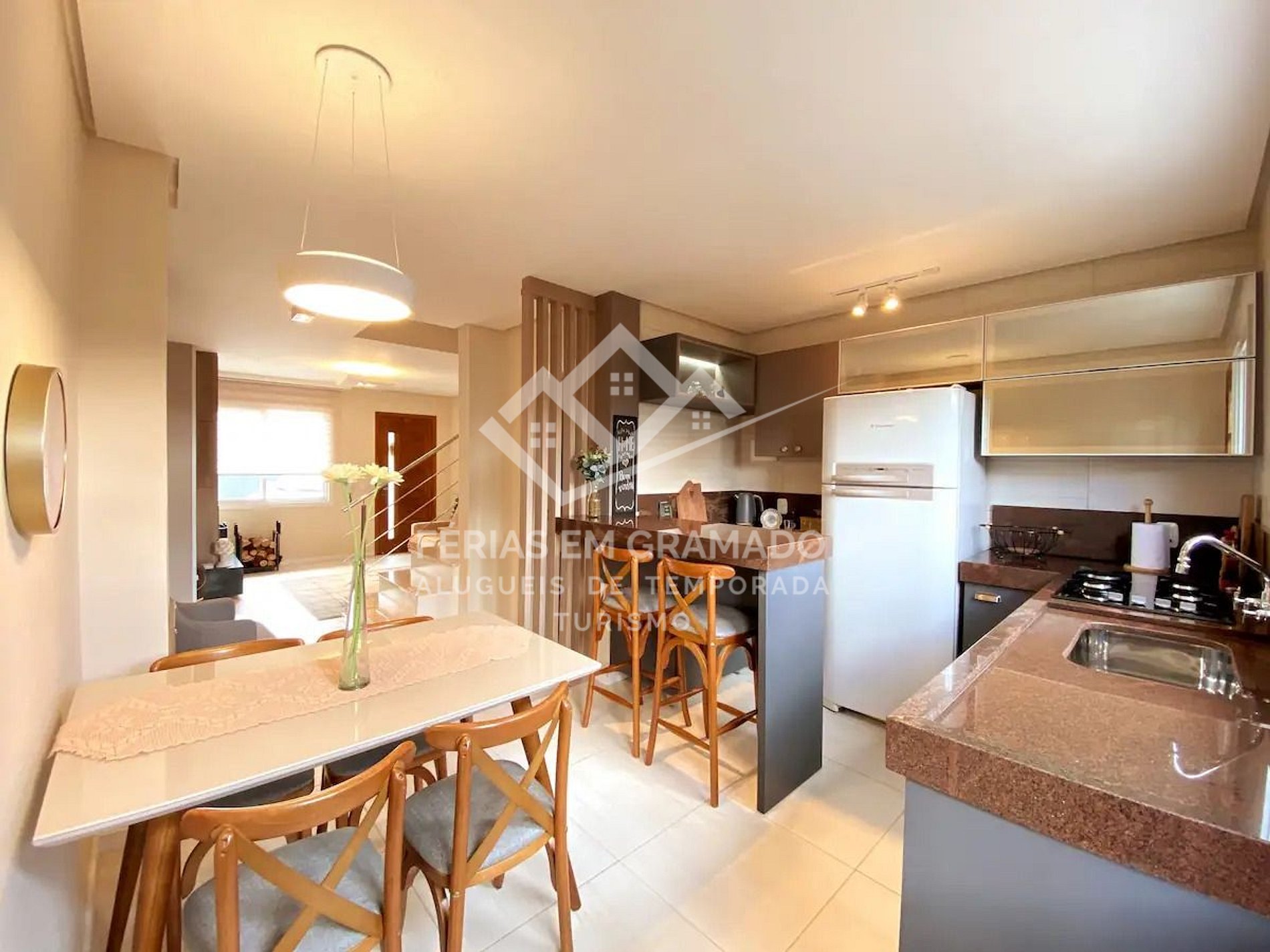 The house is part of a condominium that combines permanent residences and vacation rentals, creating a warm and community atmosphere. With the capacity to comfortably accommodate up to six people, this is the perfect place for your next adventure in Canela.