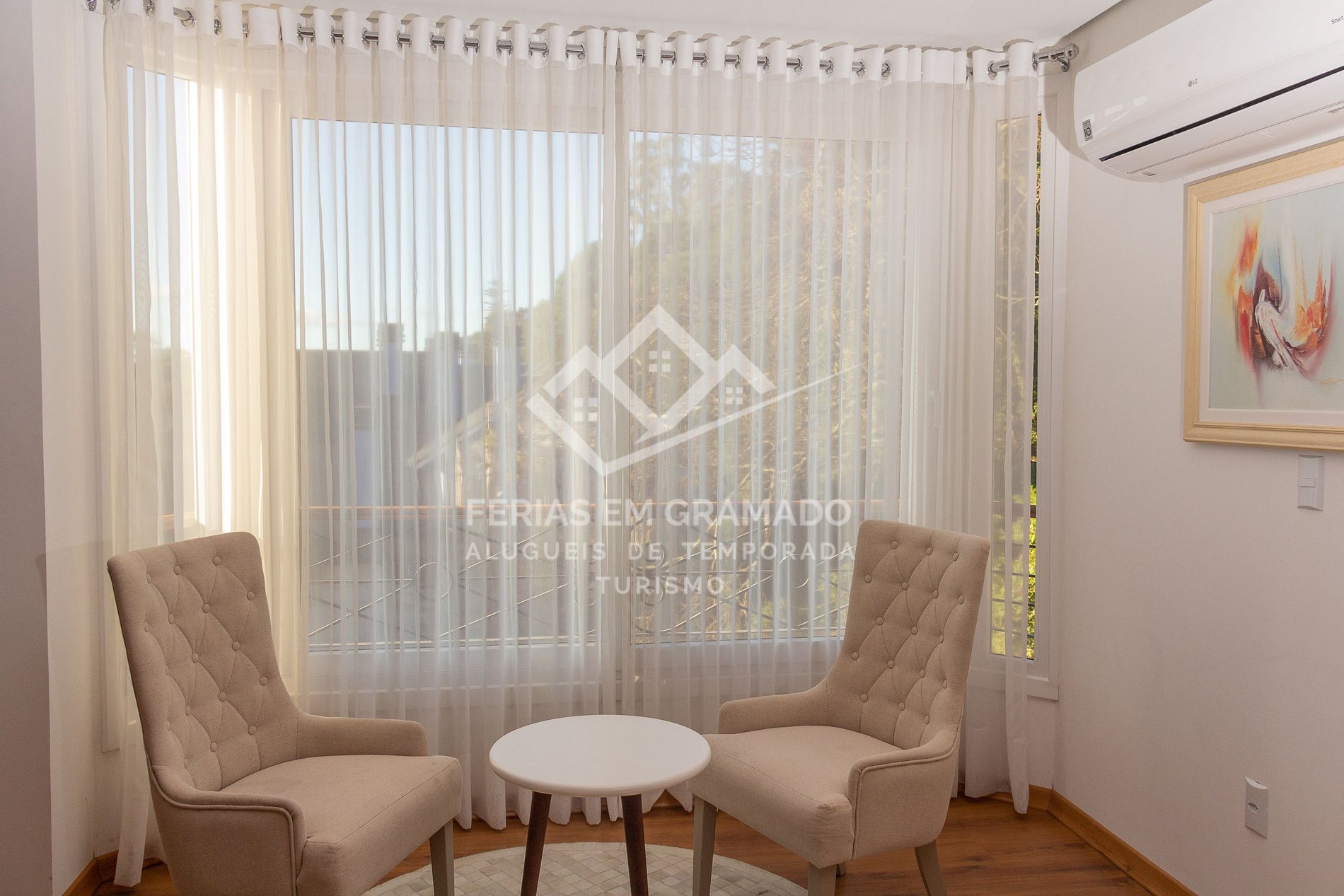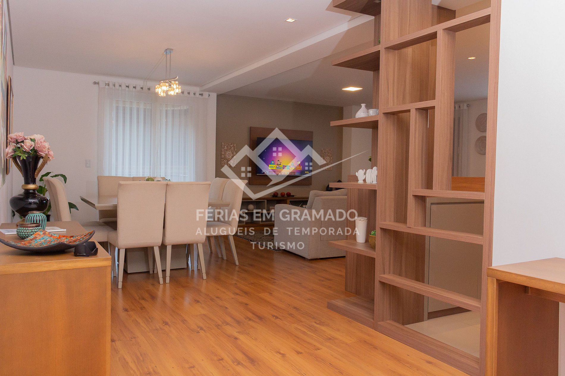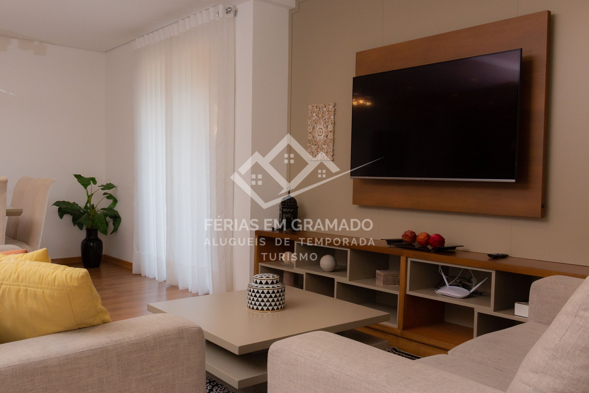 Apartamento com 3 suítes no centro de Gramado, acomodações para até 10 pessoas.