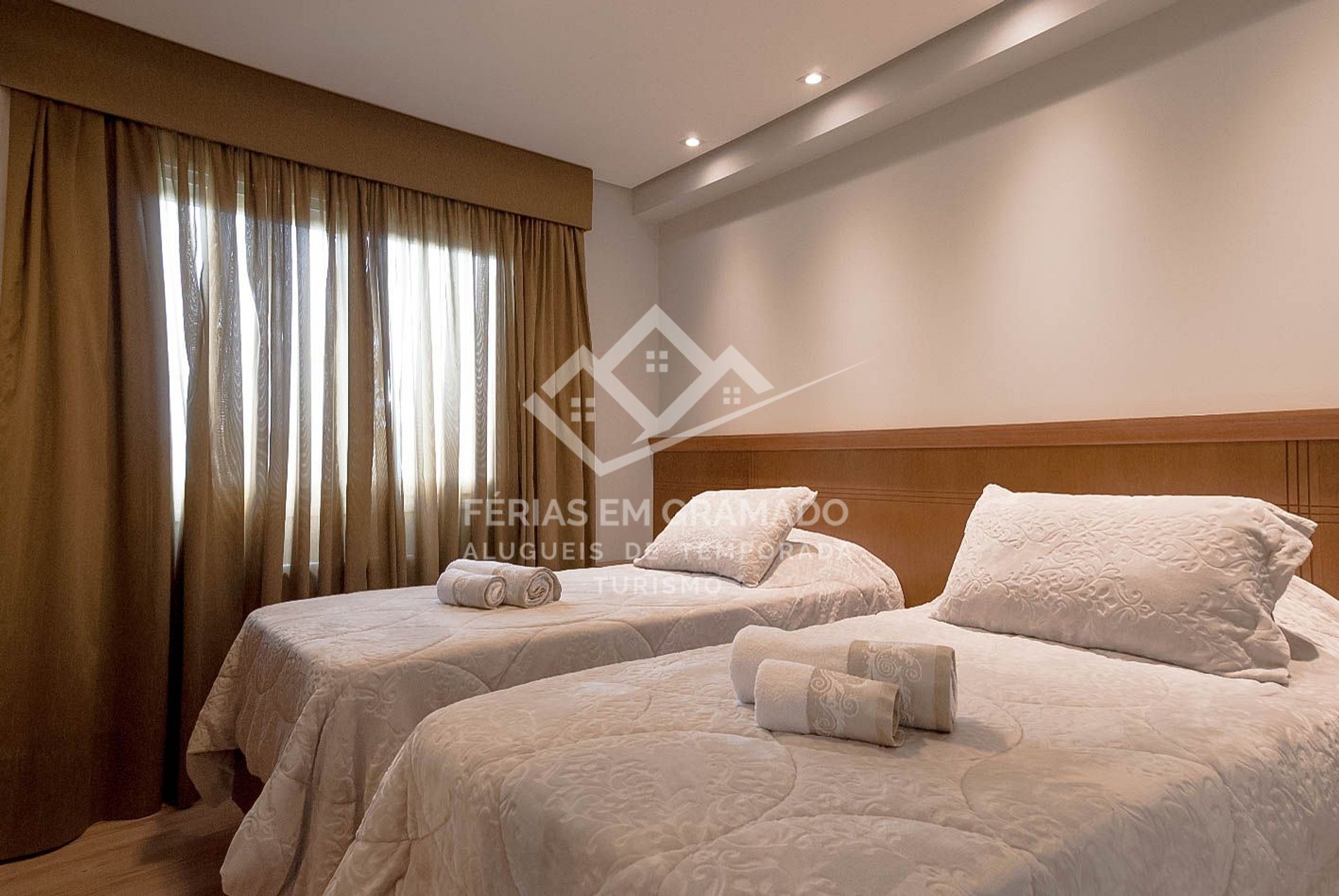 Cozy and spacious property in the heart of Gramado with two dormitories for up to 4 people, in this beautiful apartment you will enjoy a genuine experience of living in one of the most desired cities in the country. In the morning visit Plaza Major Nicoletti 5 min. walk from the apartment and enjoy getting to know the famous Covered Street, the Palace of Festivals and São Pedro Mother Church; where you will enjoy an amazing gastronomic variety. During the Christmas Light event, the venue is the scene of several daily presentations.