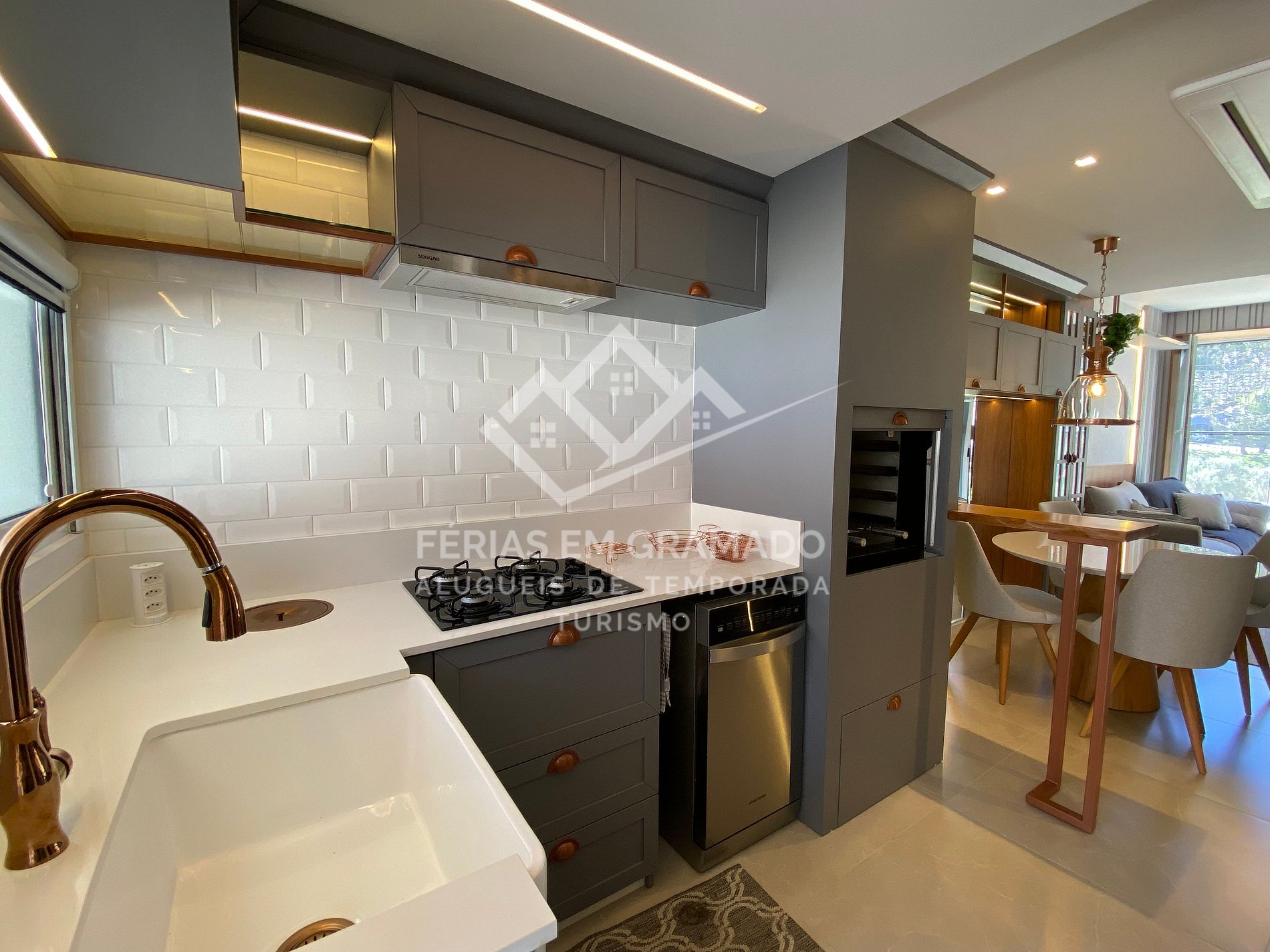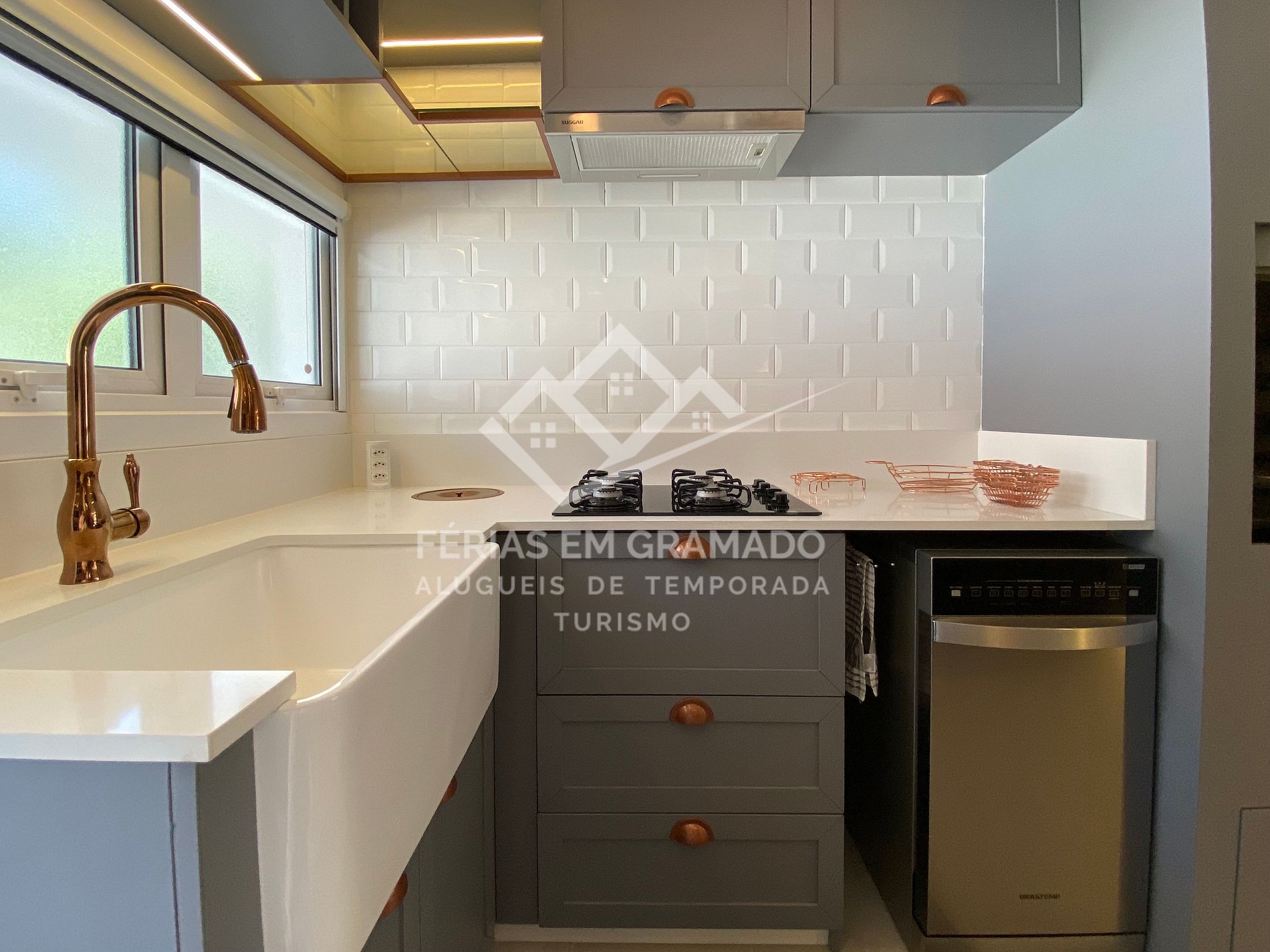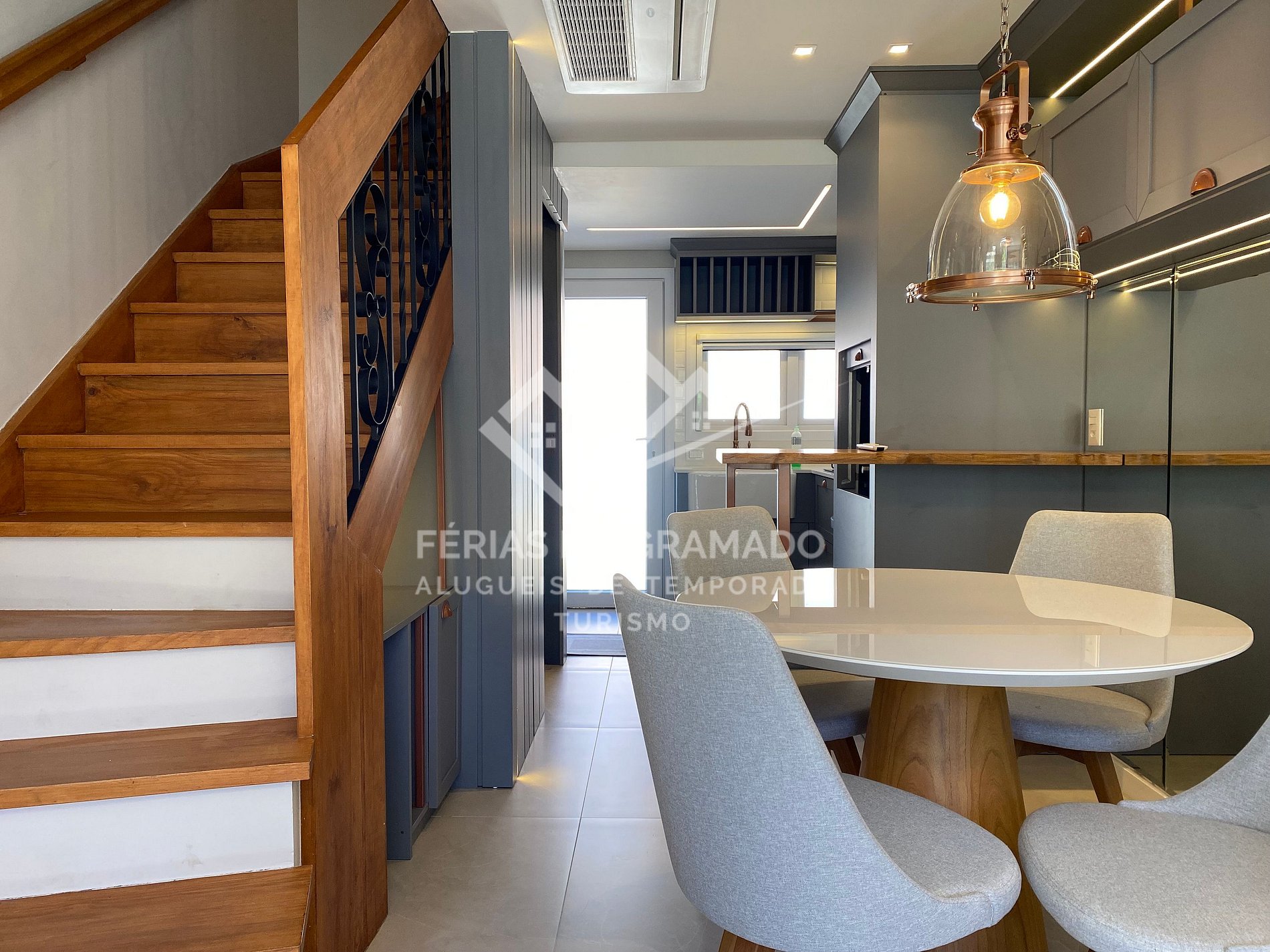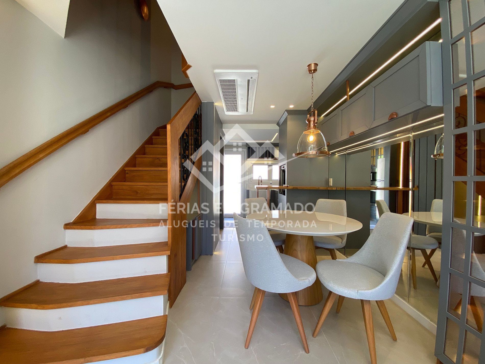 A área social é um convite ao convívio, com espaços amplos e bem iluminados, onde a decoração moderna se harmoniza com o conforto e a funcionalidade. A cozinha está totalmente equipada para que você possa preparar suas refeições com facilidade e prazer, enquanto a sala de estar é o lugar perfeito para relaxar após um dia explorando as belezas de Canela.