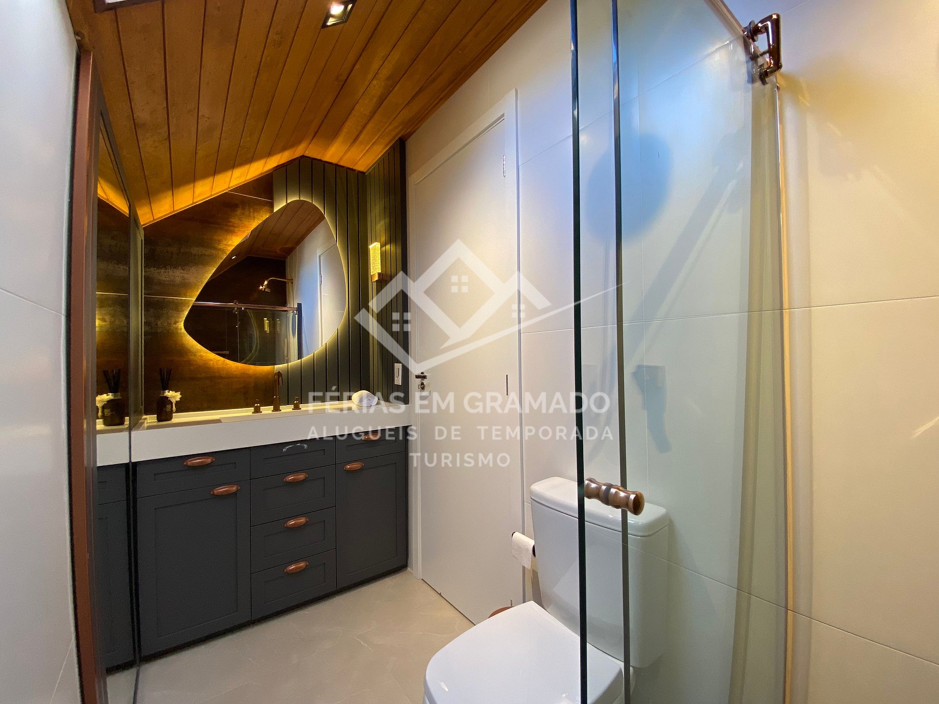 Nos andares superiores, além das 2 suítes, encontra-se um banheiro social completo, estrategicamente posicionado entre os dois dormitórios do segundo andar, proporcionando praticidade e privacidade. O lavabo social, localizado no térreo, é um toque extra de conveniência. Todos os metais e louças são de excelente qualidade, refletindo o cuidado e a atenção dedicados a cada ambiente.