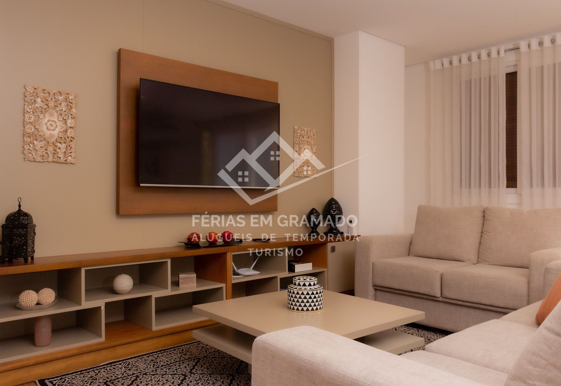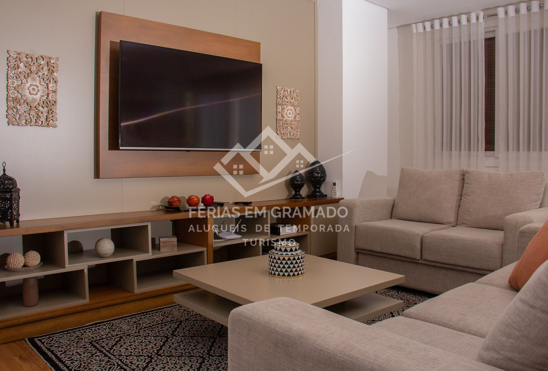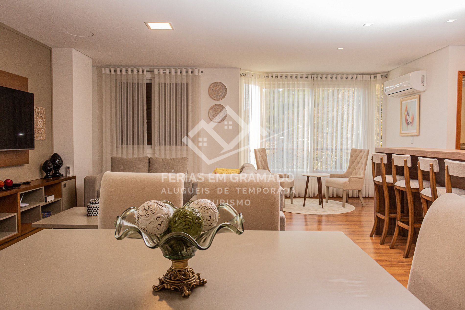 Apartamento com 3 suítes no centro de Gramado, acomodações para até 10 pessoas.