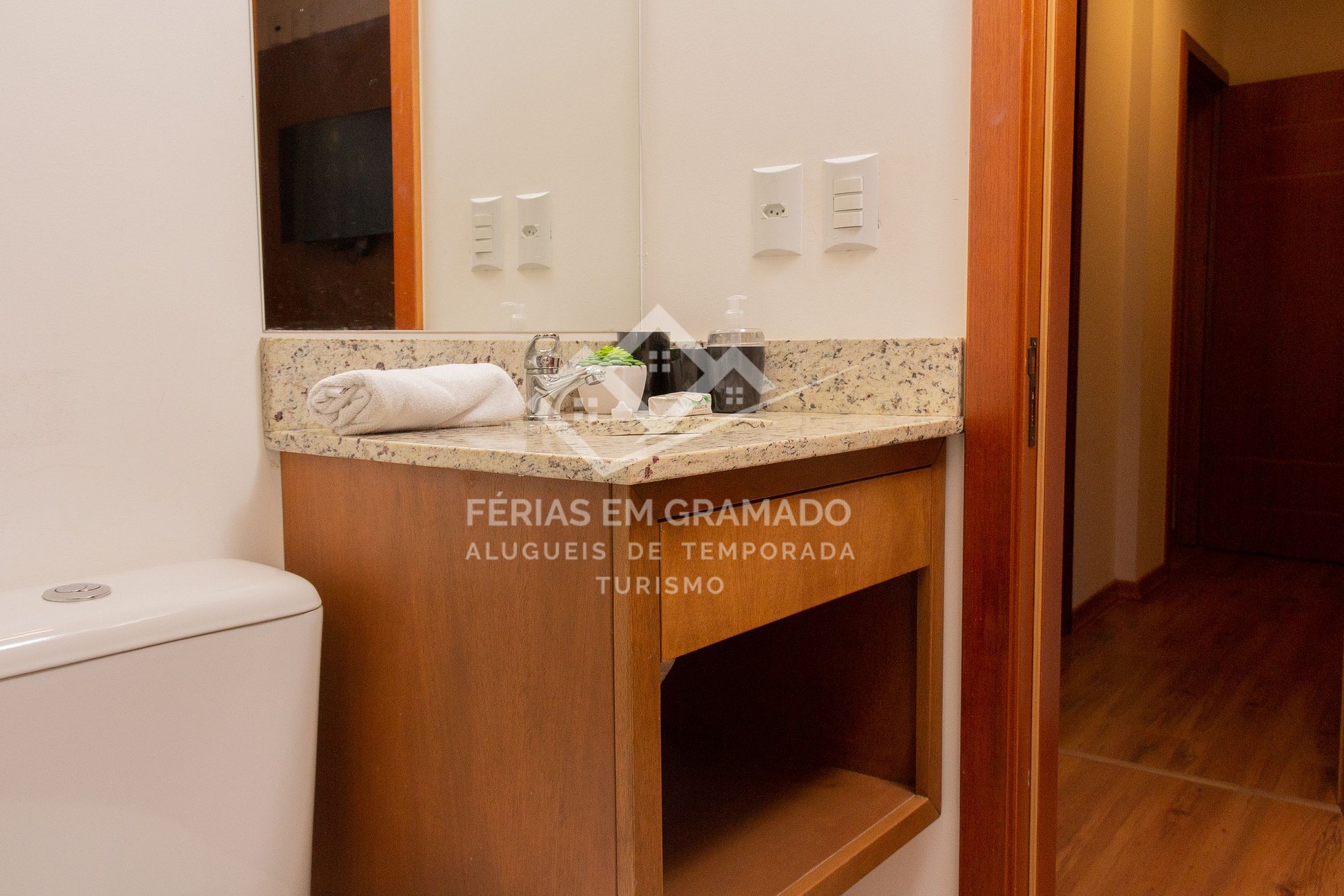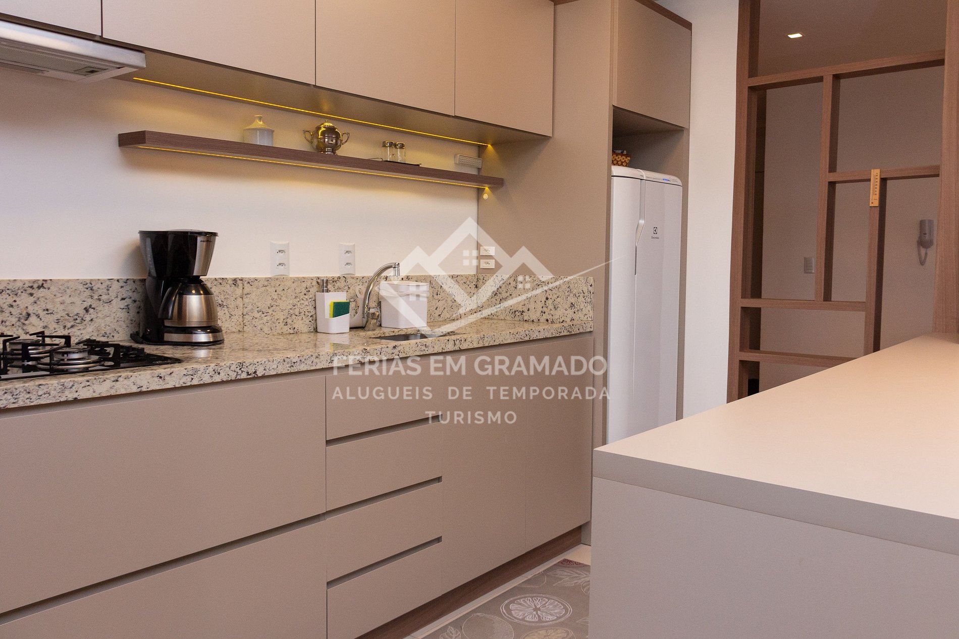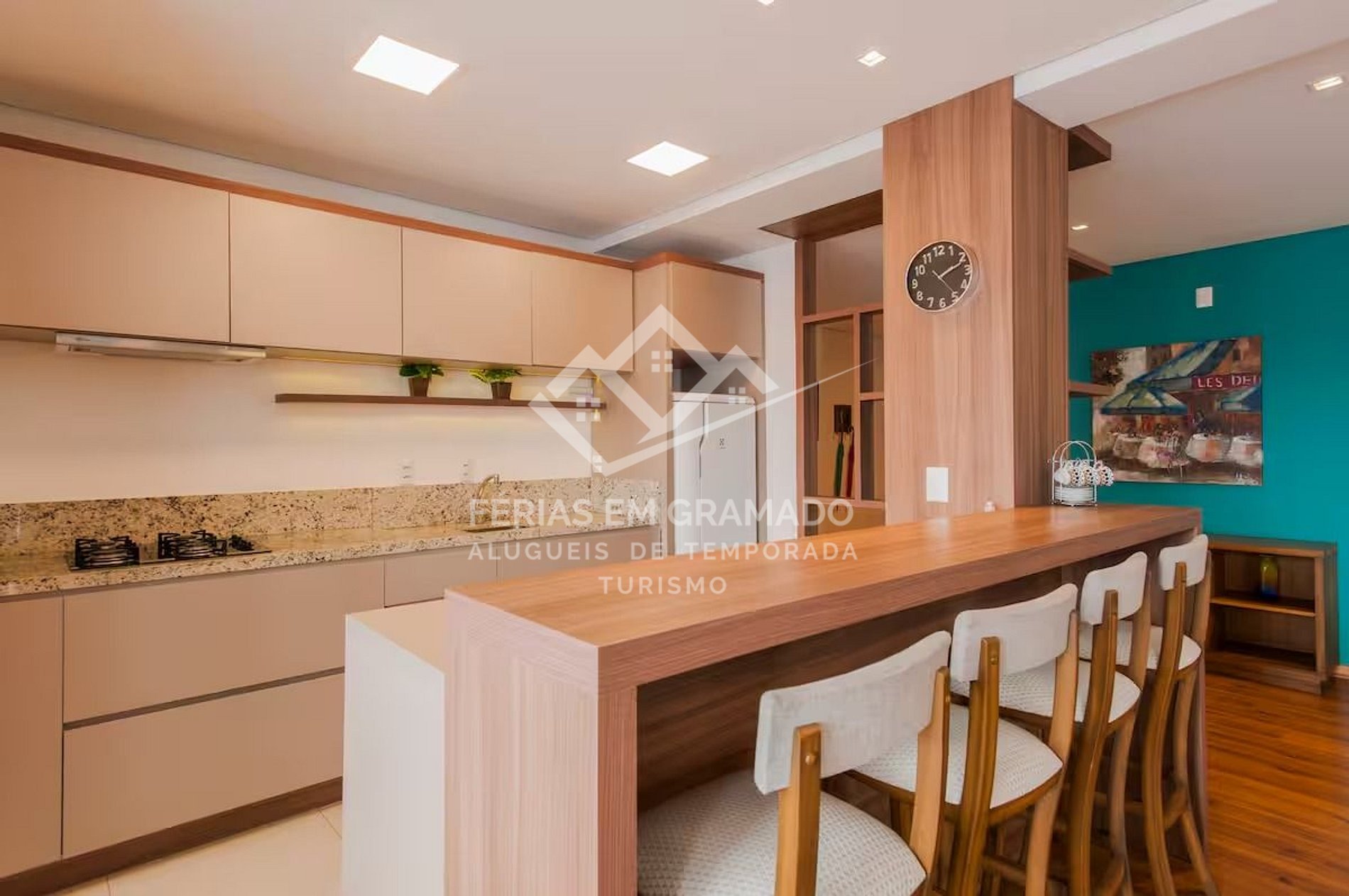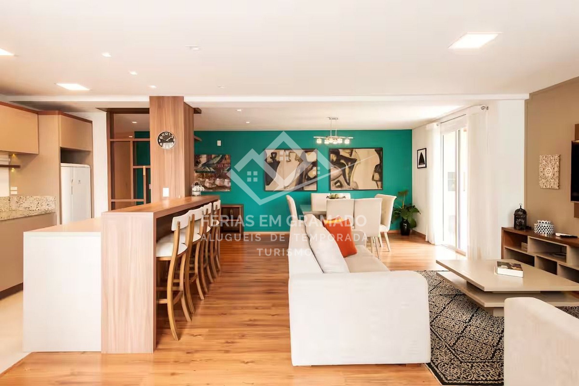 Apartamento com 3 suítes no centro de Gramado, acomodações para até 10 pessoas.